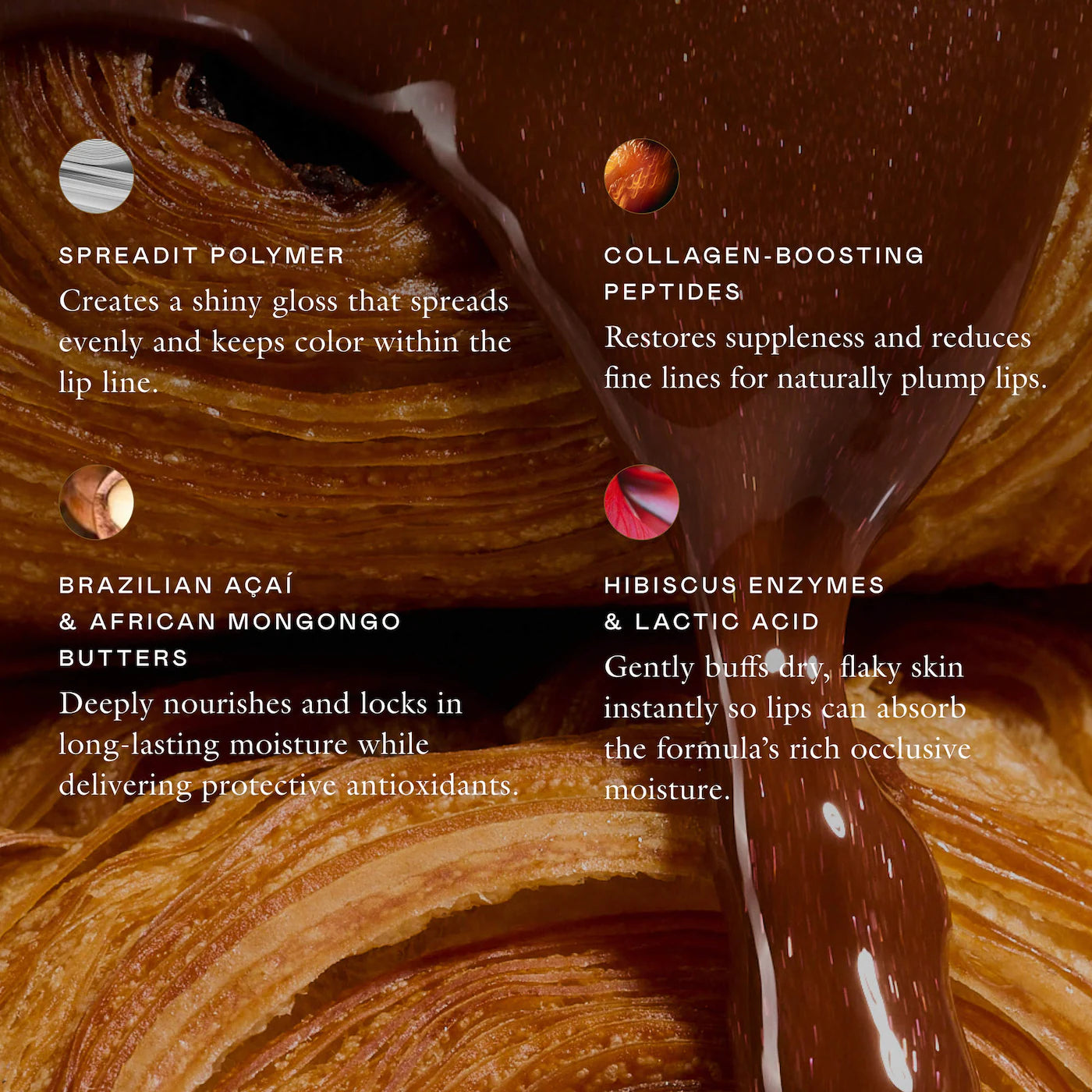- Péptido potenciador de colágeno: Restaura una sensación flexible y reduce visiblemente las líneas finas para labios de aspecto naturalmente carnoso.