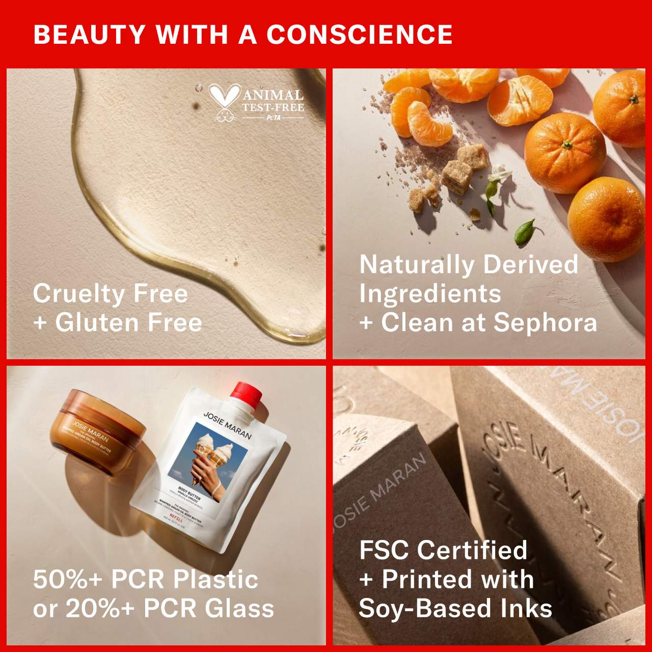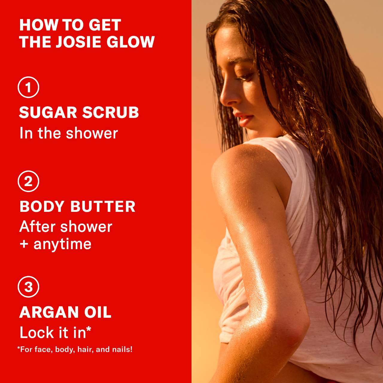 Qué es: Un trío de viaje del aceite de argán multibeneficio de Josie para la piel, el cabello y las uñas, además de una manteca corporal visiblemente reafirmante y un exfoliante de azúcar suavizante en Vanilla Vibezzz.
