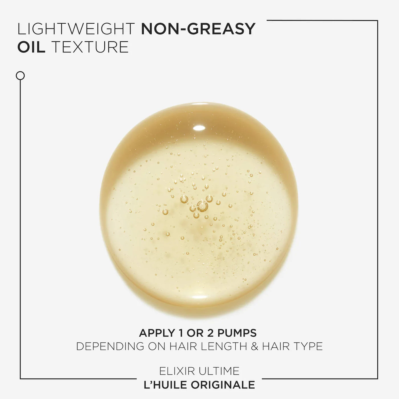 - 2,53 oz/ 75 ml de aceite capilar hidratante recargable Elixir Ultime de tamaño completo