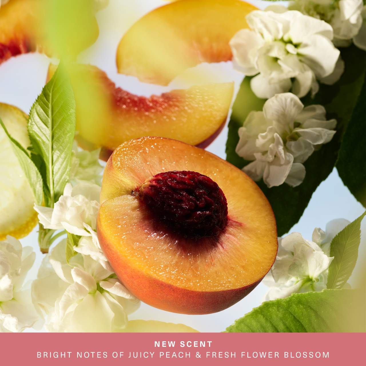Qué es: Una bruma de fragancia vibrante con notas brillantes de melocotón jugoso y flor de flores frescas, hecha para revitalizarte de inmediato mientras suaviza la piel y el cabello.