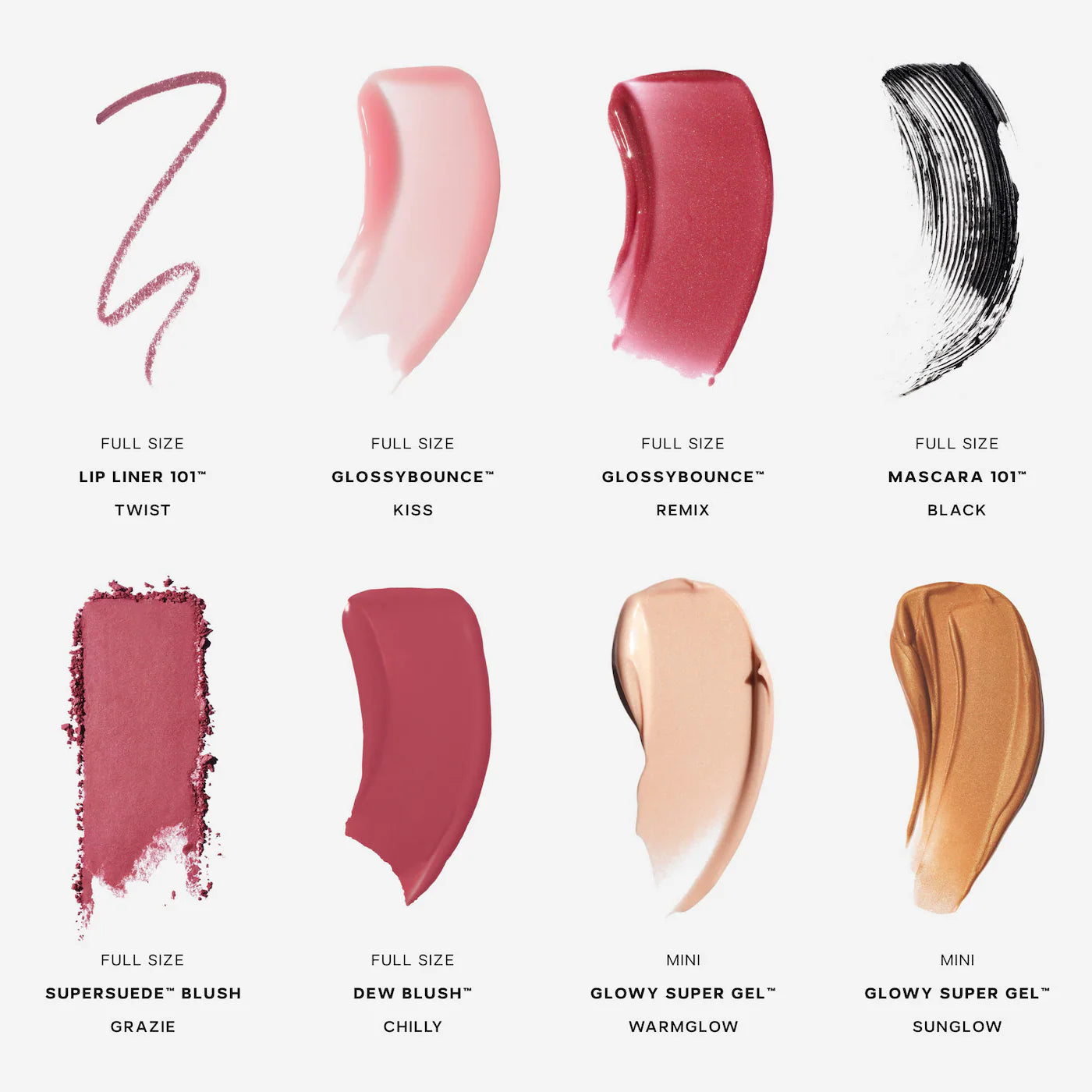 Qué más necesitas saber: Crea tu propio Saie Glow con esta bóveda de bestsellers en un Mini Vanity Case de edición limitada. Comience con su primer paso para siempre, Glowy Super Gel, agregue un toque de rubor con Dew Blush y SuperSuede, cubra las pestañas con Mascara 101 y complete su look con Lip Liner 101 y Glossybounce para labios jugosos y definidos.